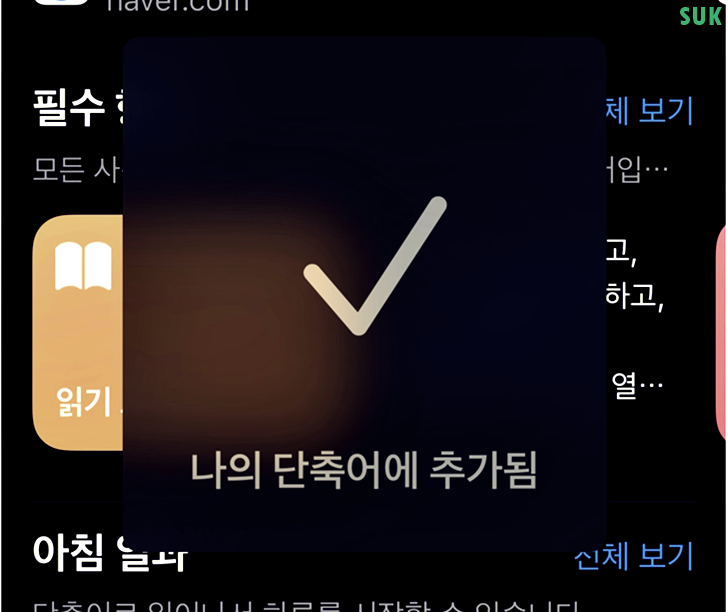 그럼 아래와 같이 나의 단축어에 추가됨 이라는 팝업이 노출되는것을 보실 수 있습니다.